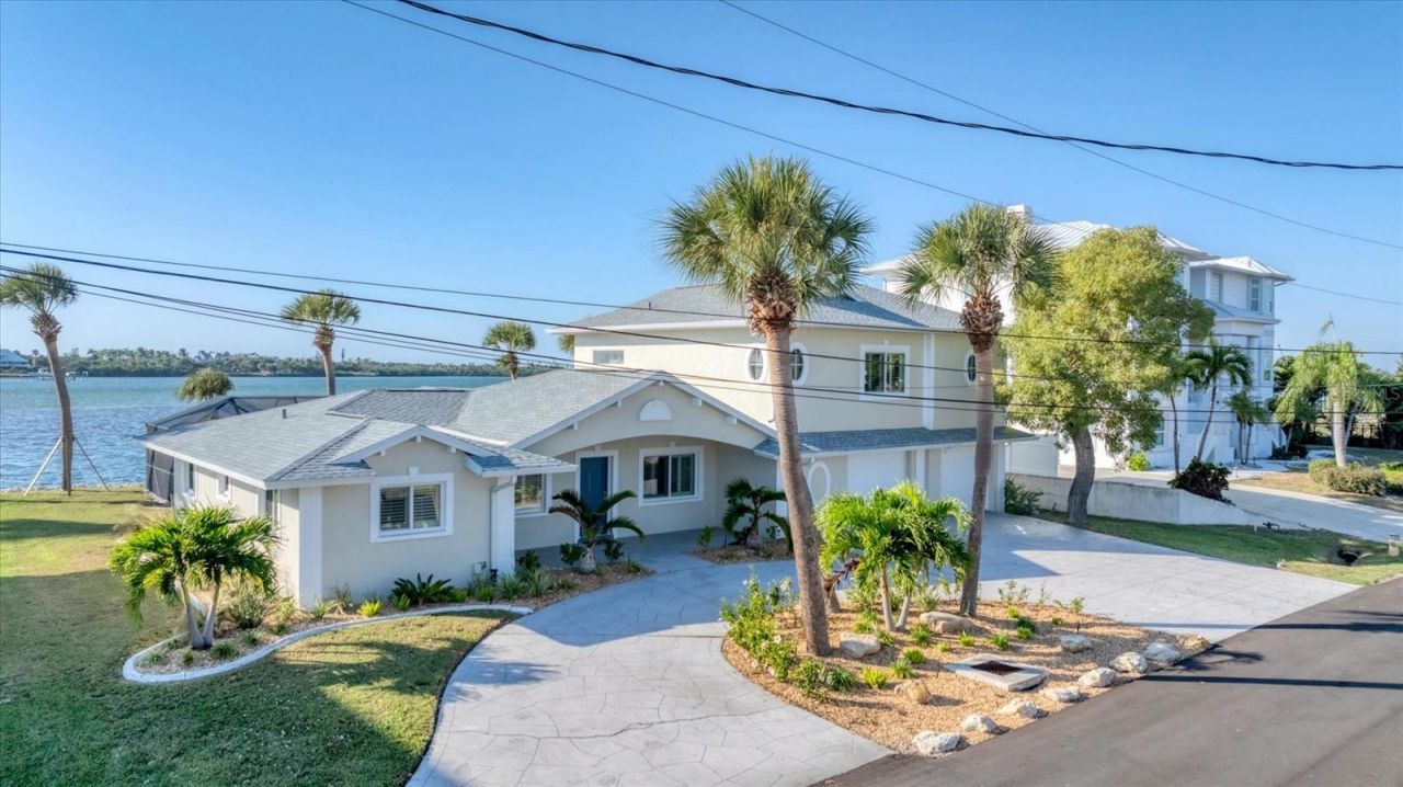 Offers the most sought after tropical waterfront views of Lemon Bay & the Intracoastal Waterway! Featuring 107 ft of waterfront and a new dock. Located in the Cape Haze/Palm Point (Marker 8) section of Englewood! Luxury Coastal Living & Lifestyle at its finest! Stunning Westerly sunsets everyday & Nature Lover's oasis where the dolphins, manatees & mullets frolic and the pelicans perch. Calling all boater and fishing enthusiasts! Direct Intracoastal Waterway & Gulf Access. No bridges and quick ride to Stump Pass, Palm Point, Manasota Key, Englewood Beaches, Stump Pass, Tiki Bars, Live Entertainment and Fine Dining. Adventure to the Stump Pass and Don Pedro State Parks, Boca Grande, Charlotte Harbor and beyond. Quiet dead-end street with no HOA! Completely renovated eloquent home with a primary suite on the second story featuring Impact sliders out to your private balcony overlooking the Intracoastal. Perfect place for a morning cup of coffee while the wildlife is waking up or a peaceful sunset view in the evening. The second floor allows for flexibility to meet your lifestyle. You could create an office corner, workout area and additional lounging. The primary bathroom offers a luxurious soaking tub with water view, a huge open shower, and a double sink vanity. Plenty of storage and counterspace including a make-up sitting area. The His and Her walk-in closet provides plenty of storage. This unique architecture of this home is eye catching as you pull into the circular driveway surrounded by stunning landscape designs. You have 2 garage doors for 2 parking bays, huge storage closet and a spacious laundry room. Entering via the front entrance of the home, you are hit with a WOW factor of the large open floorplan of the living room, dining area and kitchen all with DIRECT breathtaking views out to the pool and water. The pocket sliders completely open for unobstructed views and access to the pool and oversized patio and lanai. All the windows have new Plantation Shutters that can be open to allow for a flow of natural light throughout the entire home. As you peruse, you will notice the exquisite details; tall baseboards & double crown molding. The new kitchen quartz subtle swirls compliment the new tile plank ceramic flooring. The guest suite is off to the left of the living room with 2 bedrooms divided by a classy bathroom. The 3rd bathroom is located on the opposite side of the living room/kitchen which also serves as the pool bath complete with a new walk-in shower. You and your guests have easy access from the backyard through the backdoor into the laundry room and home. For extra convenience, there are 2 back doors from the garage and another side door by the dinette. Huge lanai space offering optimal entertainment and options to add a tiki bar and outdoor kitchen. 2025 Pool Cage & Screens, Pool Heat Pump, Dock and 6 New Pilings. 2025 Impact Windows,& Sliders, two central A/C units, New Plumbing, Electric Panel & two Water Heaters, one tankless! 2023 Roof. Don't hesitate and call for your private showing of this Peaceful Place in Paradise!