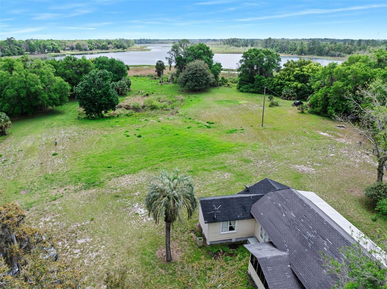A rare opportunity to own 40 acres of private waterfront land set within a peaceful, small- town agricultural community, yet conveniently located near schools and everyday essentials. This unique property offers exceptional natural beauty, featuring a natural spring and expansive lake frontage along Shaw Lake, providing 144 acres of scenic water views, excellent fishing, in a true Old Florida setting. The high and dry home has an existing 2 bedroom, 1 bath and is being sold AS-IS. Equipped with 2 power supplies and 2 septic systems, the property is well positioned for renovation or a custom build, this property also presents potential for subdivision, subject to local zoning/permitting requirements. Whether you envision a private peaceful estate, or generational homestead, this land offers a rare blend of space, water and tranquility in a classic Old Florida lakefront setting. Call for your showing today.lakefront living. Call today for your showing.